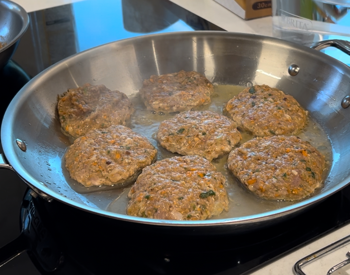 5. ๊ณ ๊ธฐ์ ์ฑ์๋ค์ ๋ชจ๋ ํฐ ๋ณผ์ ๋ด์์ค๋๋ค.