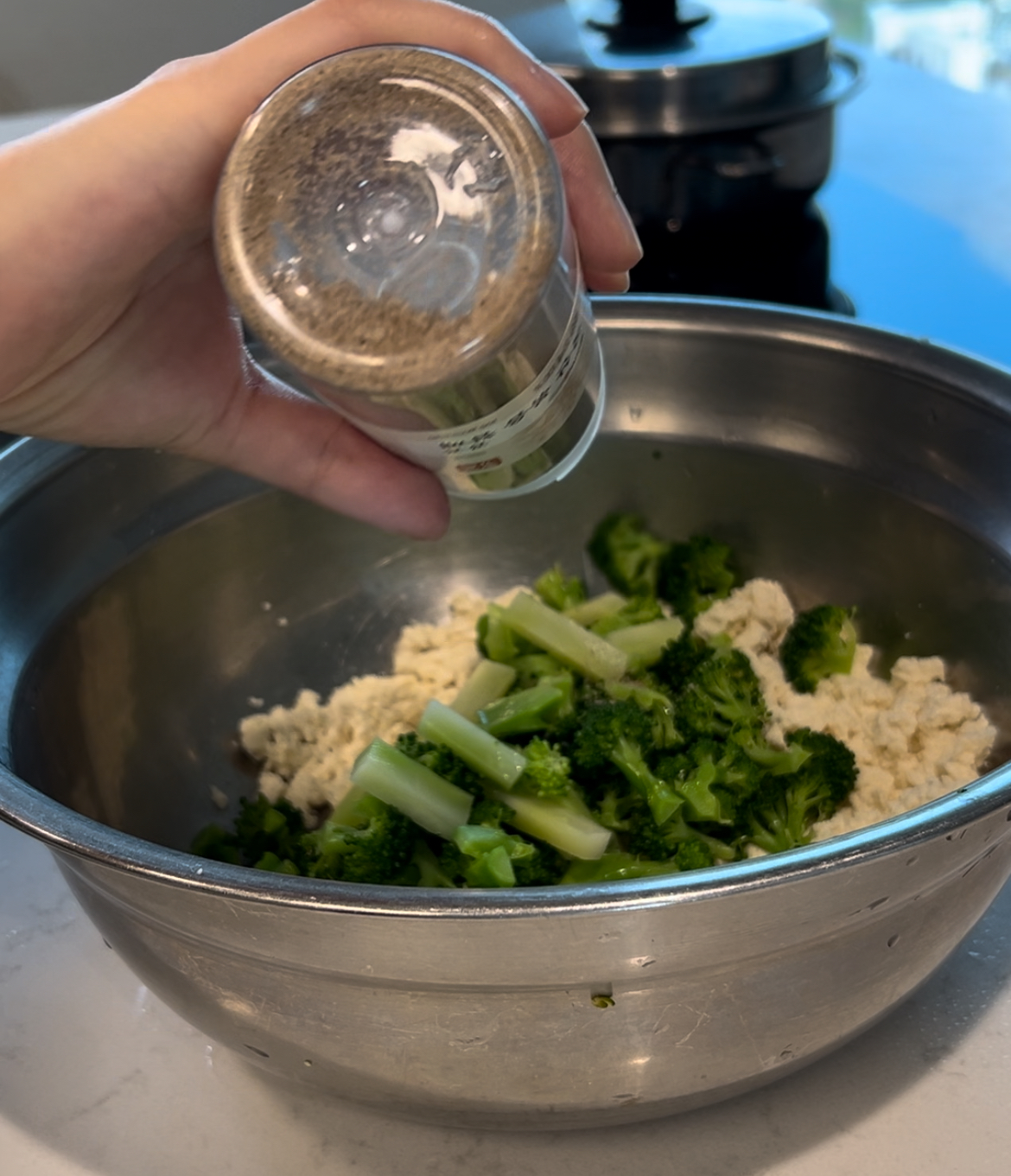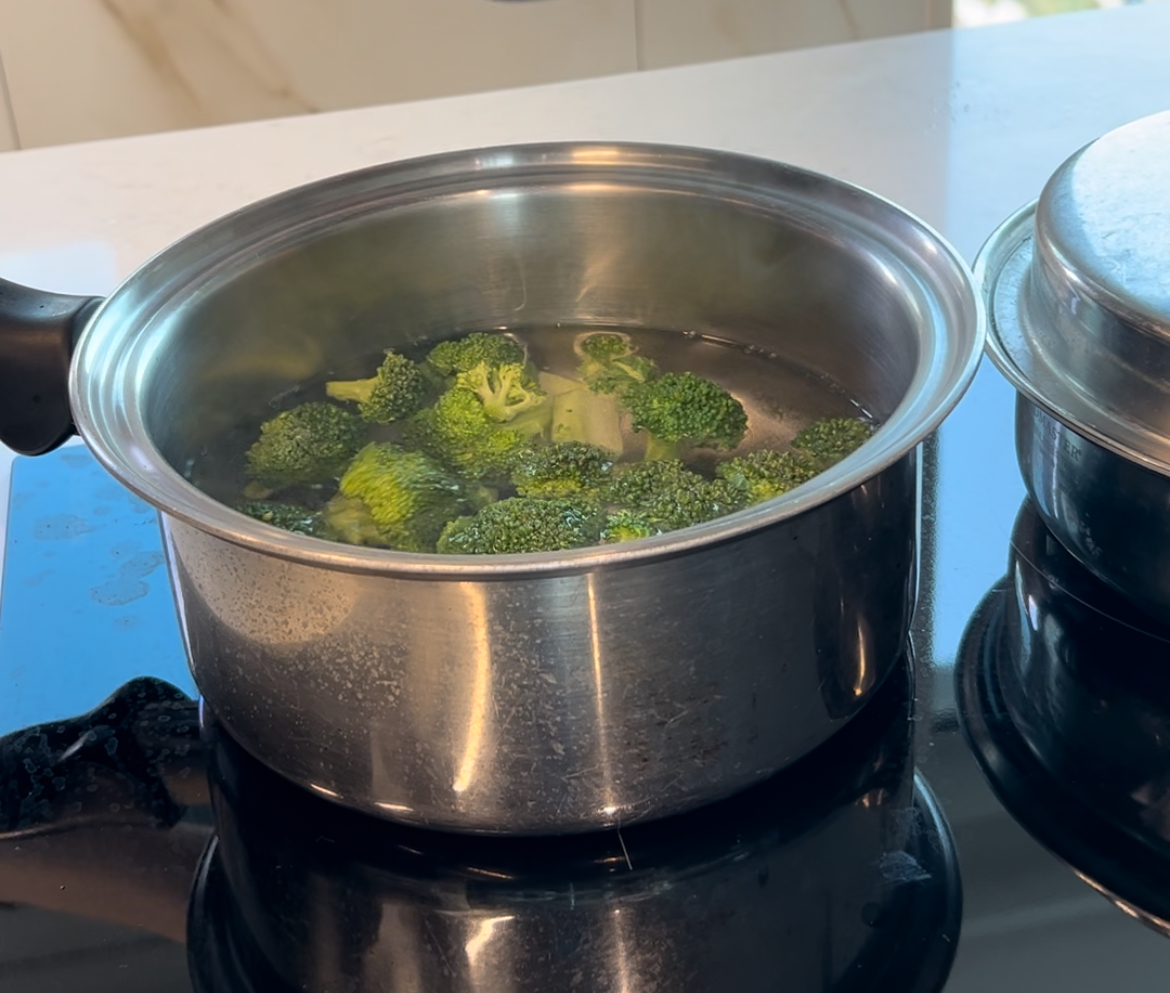 3. ๋๋ ๋ฌผ์ ์๊ธ ๋ฐ์คํผ ๋ฃ๊ณ ๋ธ๋ก์ฝ๋ฆฌ๋ฅผ ๋ฐ์ณ์ฃผ์ธ์